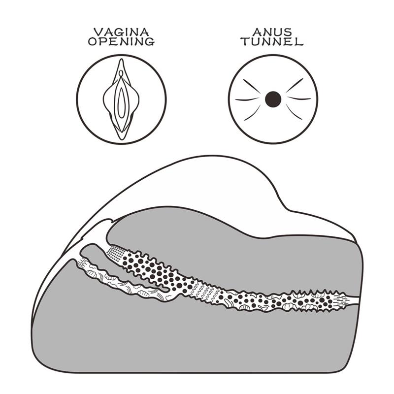 This masturbator is beautifully designed and molded after a model for a more authentic experience. The tunnel is designed with nubs that caress you as you slide deep inside her. The insertion of the anus is much tighter and has numerous curves. You will be able to lay her down or hold her close to you while you explore any of her two intricate insertions.