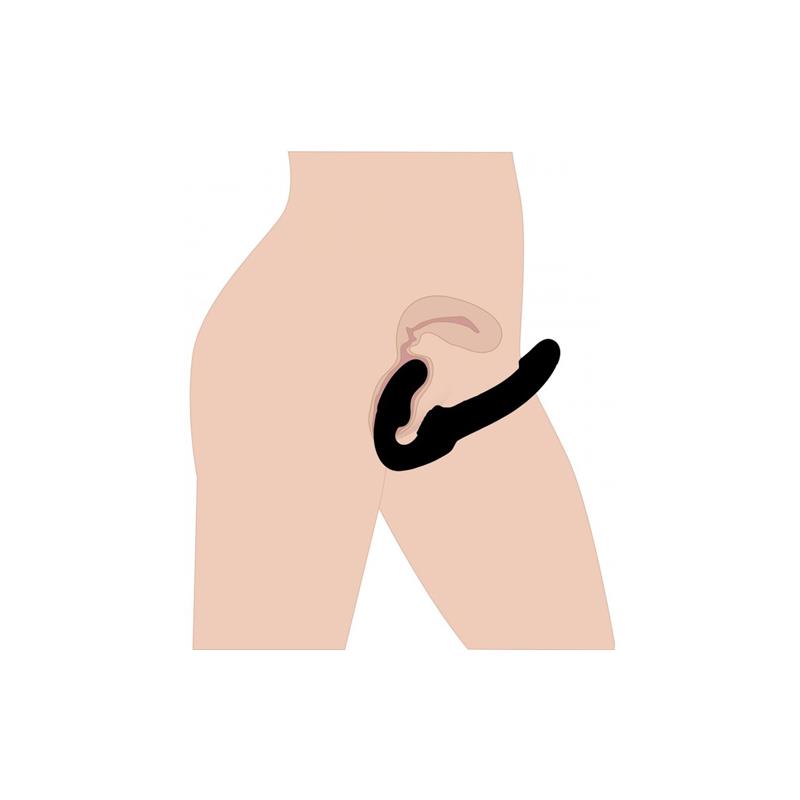 With this double dildo the use of harness is not necessary. The dildo has an ergonomic curve and is designed to slide in and stay in place while strengthening the pelvic floor. The waterproof design is completely closed, with a firm material and a semi-realistic shape. There is a textured pad that is designed to stimulate the clitoris and an especially angled tip to provide a direct sensation at G-spot.