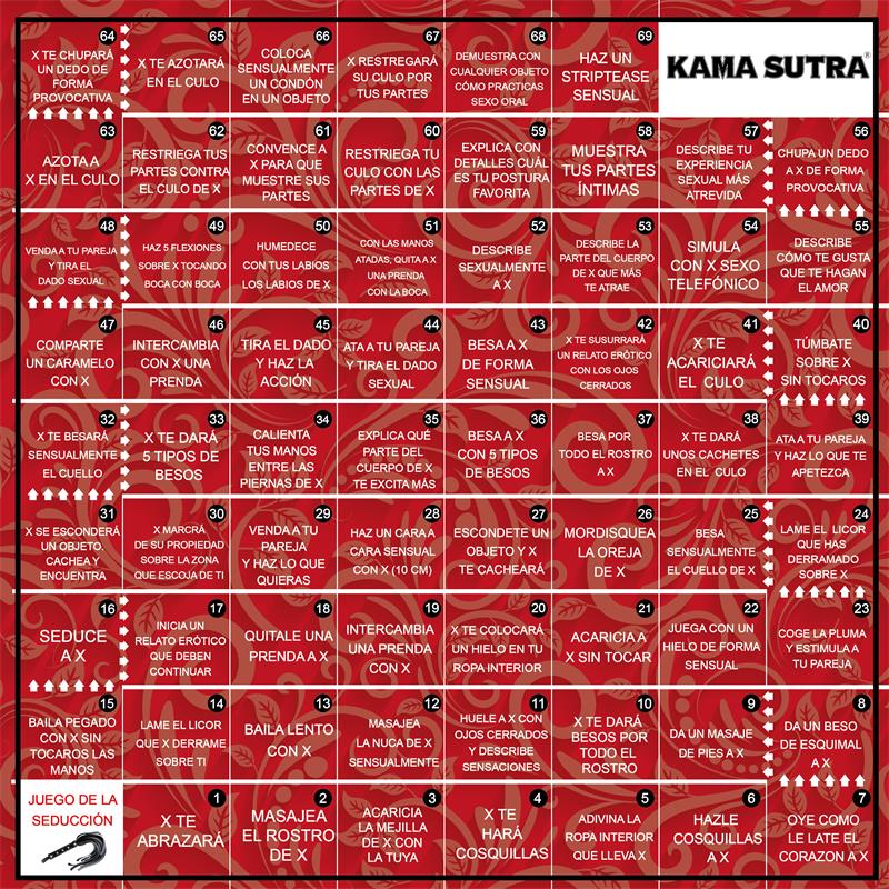 Fun game to enjoy as a couple or with friends. The Seduction game is played like the traditional goose game. The die is rolled and advancing as much as it indicates. But each box has a test for whoever falls into it and if someone refuses to do it, they will have to pay with a pledge. The winning player will be the one who reaches number 69.